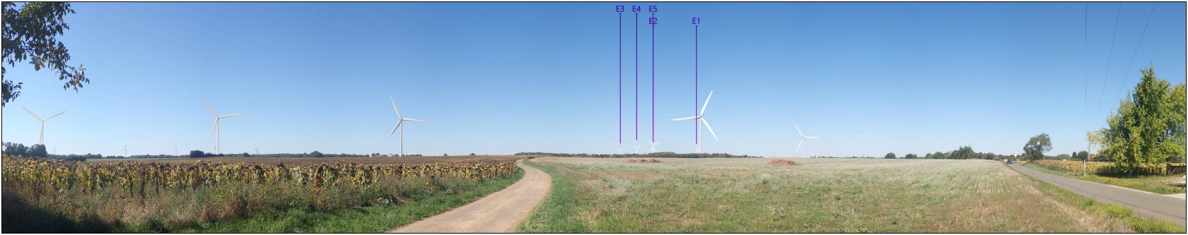 Suite à l’avis du (Conseil National de la Protection de la Nature), et pour répondre à ses recommandations, le gabarit du projet éolien a été modifié (diminution du rotor) : 5 éoliennes de types Vestas V136 de 4,5 MW de capacité unitaire ou bien des Nordex N133 de 4,8 MW de capacité unitaire. La hauteur en bout de pale reste inchangée : 180 mètres.
